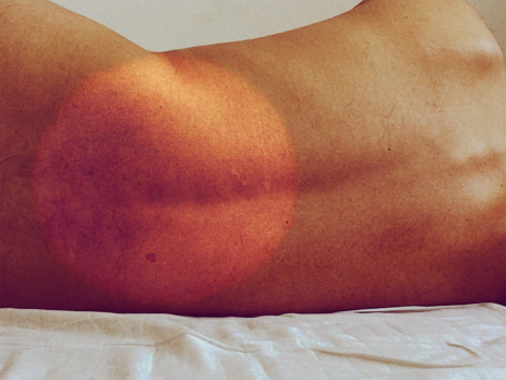 In this music video from the series One Flushed Cheek , we don’t see a cheek, but instead, a naked (male) back turned toward us, which, draped on a bed sheet, slowly becomes lighter, as though we were waking up next to it: a morning after the date, a date with a back.