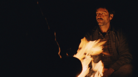 Shot and reverse shot. Darkness and silence. Three men sit around a campfire, their lines of sight intersect. A field of tension filled with unease develops. In the steady repetition of the circling movement, a fourth gaze pushes to the foreground—the viewer’s own.