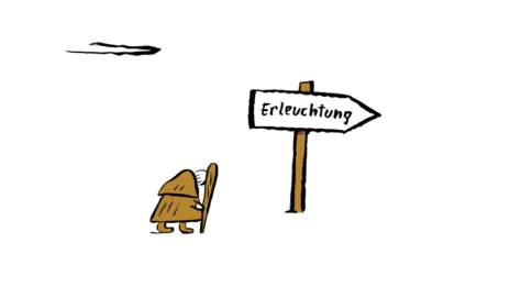 Three shorts by comic artist Nicolas Mahler and animator Stefan Holaus. From their series which now comprises 26 episodes, we present three episodes that particularly express the pointed wit and humorous view of film history. In Die Billig-Zeitmaschine , a spherical UFO lands in the brown but extremely friendly Middle Ages—just as it is clearing away its accumulated manure. In Erleuchtung , a poor pilgrim seeks enlightenment and still has a few kilometers to go—and the realization that he might be getting screwed over. And in The Wolf Ma’am , eerie noises can be incredibly disturbing when you want to read your newspaper in the evening.