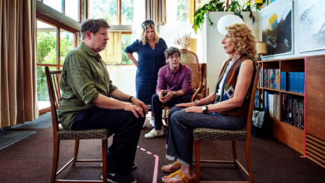 ist also ein Röschenkrieg, in dem gleich zu Beginn die eine oder andere Gemeinheit ausgetauscht wird. Aber keine Sorge, wirklich garstig ist hier natürlich niemand, denn erstens – man ahnt es – können Simone und Walter in Wahrheit nicht ohneeinander, und zweitens wartet ein erheblicher Geldpreis auf die beiden: Gesucht wird per Ausschreibung in der lokalen Presse nach dem „glücklichsten und liebevollsten Paar reinsten Herzens“. Die auf Kreditrückzahlung drängende Bank und die nach Deutschland ausgewanderte Tochter könnten das Geld gut gebrauchen. Und während sich das queere Duo Maya und Mia mit seinem Podcast „Liebe Love Amore“ auf die Suche nach dem Traumpaar macht, bekommen Simone und Walter ernste Konkurrenz. Ob diese Ehe gerettet und das baufällige Haus gekittet werden kann? Das wird knapp. (Michael Pekler)
